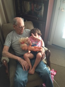 Joy. Oh the joy that you, Audrey, have brought into his life. I watch his eyes light up when you run to him. He smiles ear to ear when you play dolls with him or fix him fake coffee. He loves you. And he loves all his great grandchildren. The Lord has blessed him with a bunch of great grandkids.